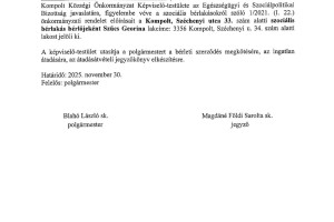 Érdeklődni lehet az Önkormányzatnál vagy Kompolt község polgármesterénél a +36-36/489-029 telefonszámon vagy a polgarmester@kompolt.hu email címen.